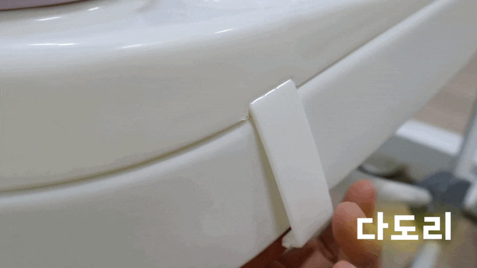 5. 이제 시트에 달린 플라스틱 고리를 본체 홈에 꾹 눌러 아래 방향으로 내리며 고정시켜준다.