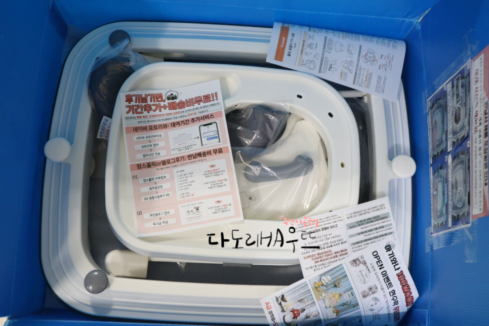 열어보니 정말 깔끔 하게 정리되어 들어있는 보행기와 부품들.