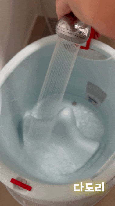 -> 욕조 두 개에 물을 가득 받아서 사용하고 버렸는데 이건 그냥 받아놓고 씻긴 다음에 흐르는 물에 헹구면 끝나요.