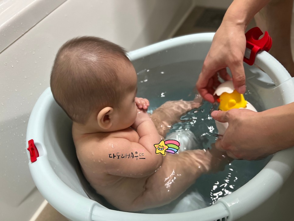 허리에 조금 생긴 6개월 아기이기 때문에 욕조에 앉아서 목욕을 할 수 있습니다.