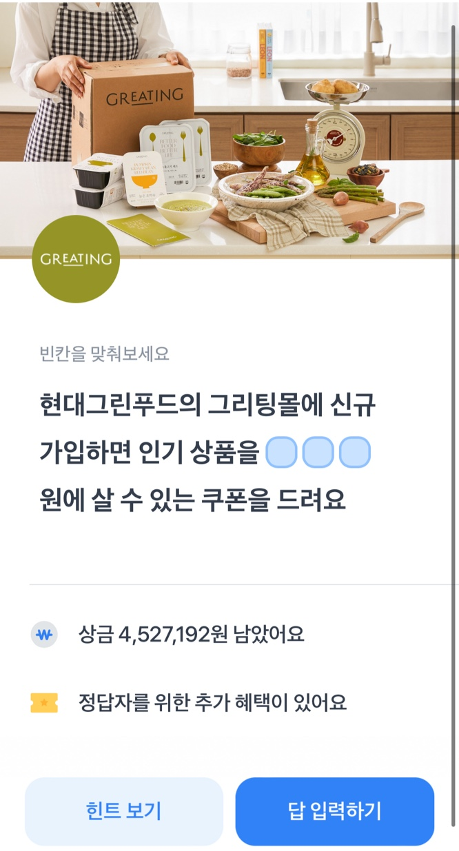 토스 행운퀴즈 현대그린푸드 그리팅몰 GREATING