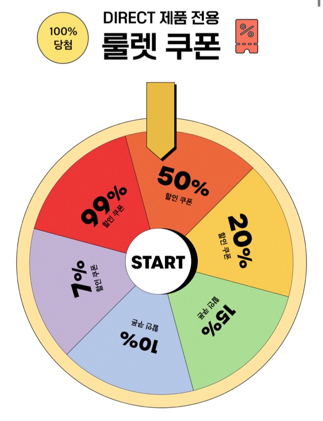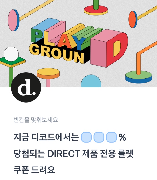 지금 디코드에서는 OOO% 당첨되는 DIRECT 제품 전용 룰렛 쿠폰을 드려요