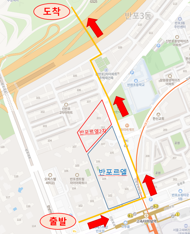 간단한 아파트 정보는 알아봤으니 이제 반포르엘 공사현장을 보러 가겠습니다.