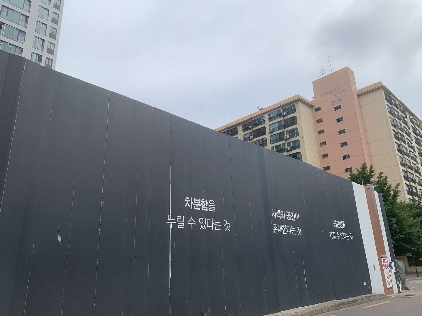 남쪽 공사현장에는 펜스가 있었지만 동쪽 편은 공사 가림막이 제거된 모습입니다.